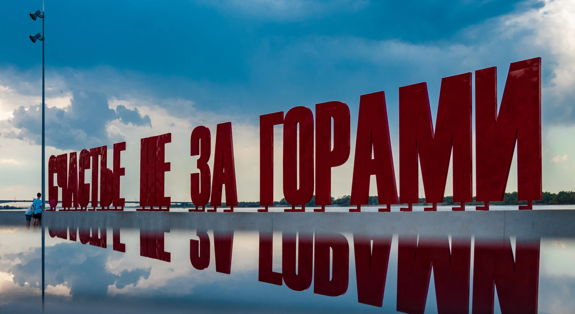 Если вы прибываете в Пермь на теплоходе, у речного вокзала вас встретит, пожалуй, самая узнаваемая инсталляция города — огромная красная надпись «Счастье не за горами». Она была установлена в 2009 году у здания Речного вокзала и с того времени успела стать настоящим символом города, появившись в сериале «Реальные Пацаны», фильме «Географ глобус пропил» и клипе Канье Уэста «White Dress».